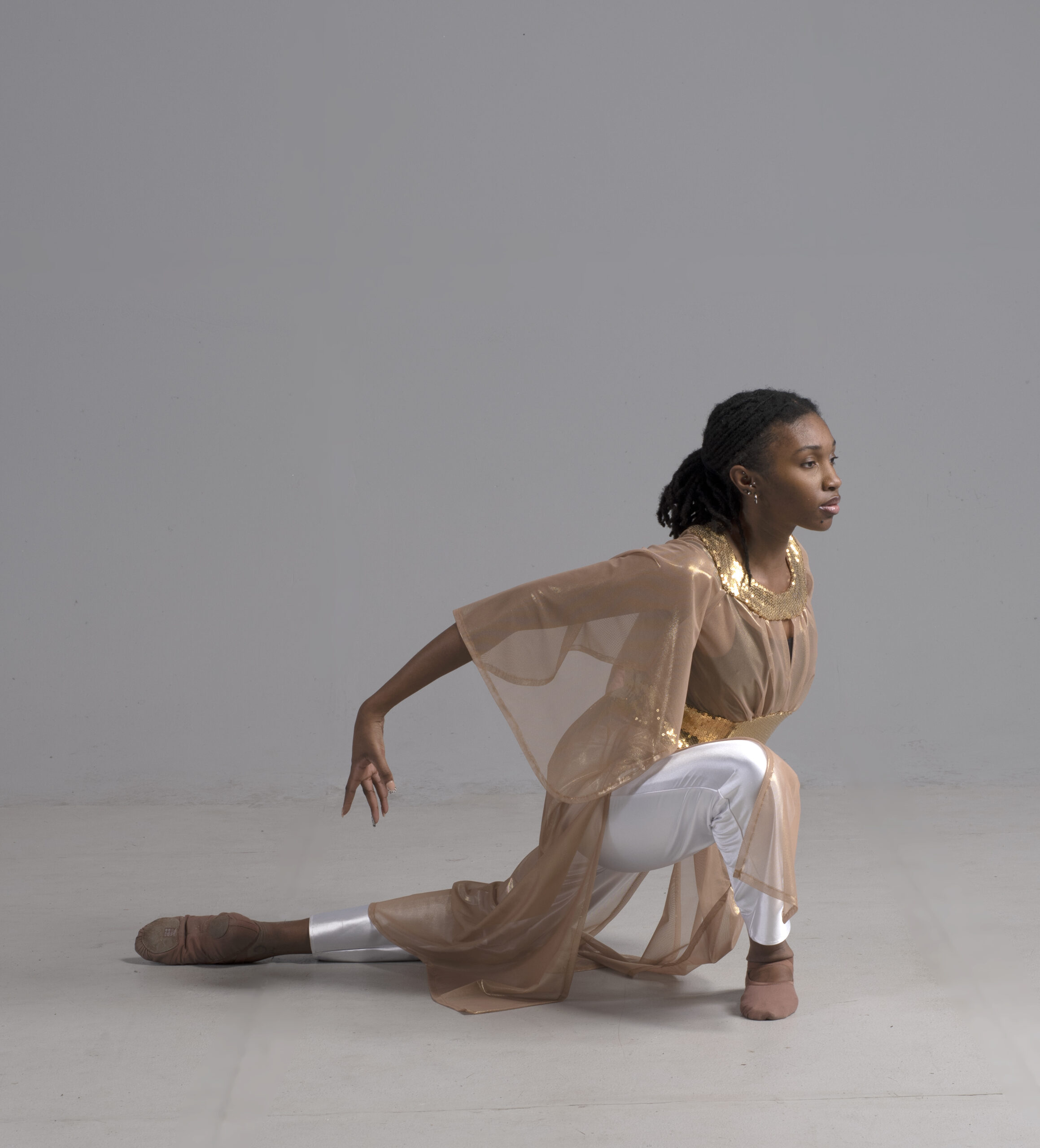 (a) Asymmetrical Dance Dress | Sheer Metallic Gold