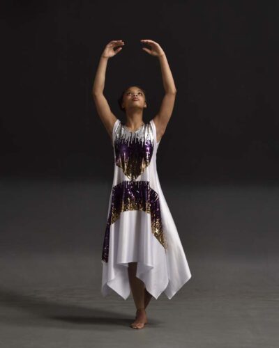 Exclusively at MHX Dancewear Too, a uniquely designed sleeveless, breathable sleeveless dance dress with the perfect dancer’s stretch.  Shown in a gold metallic and hot pink.  Available in custom or rental and other rich,rich colors for adults and youths or all sizes.