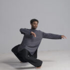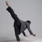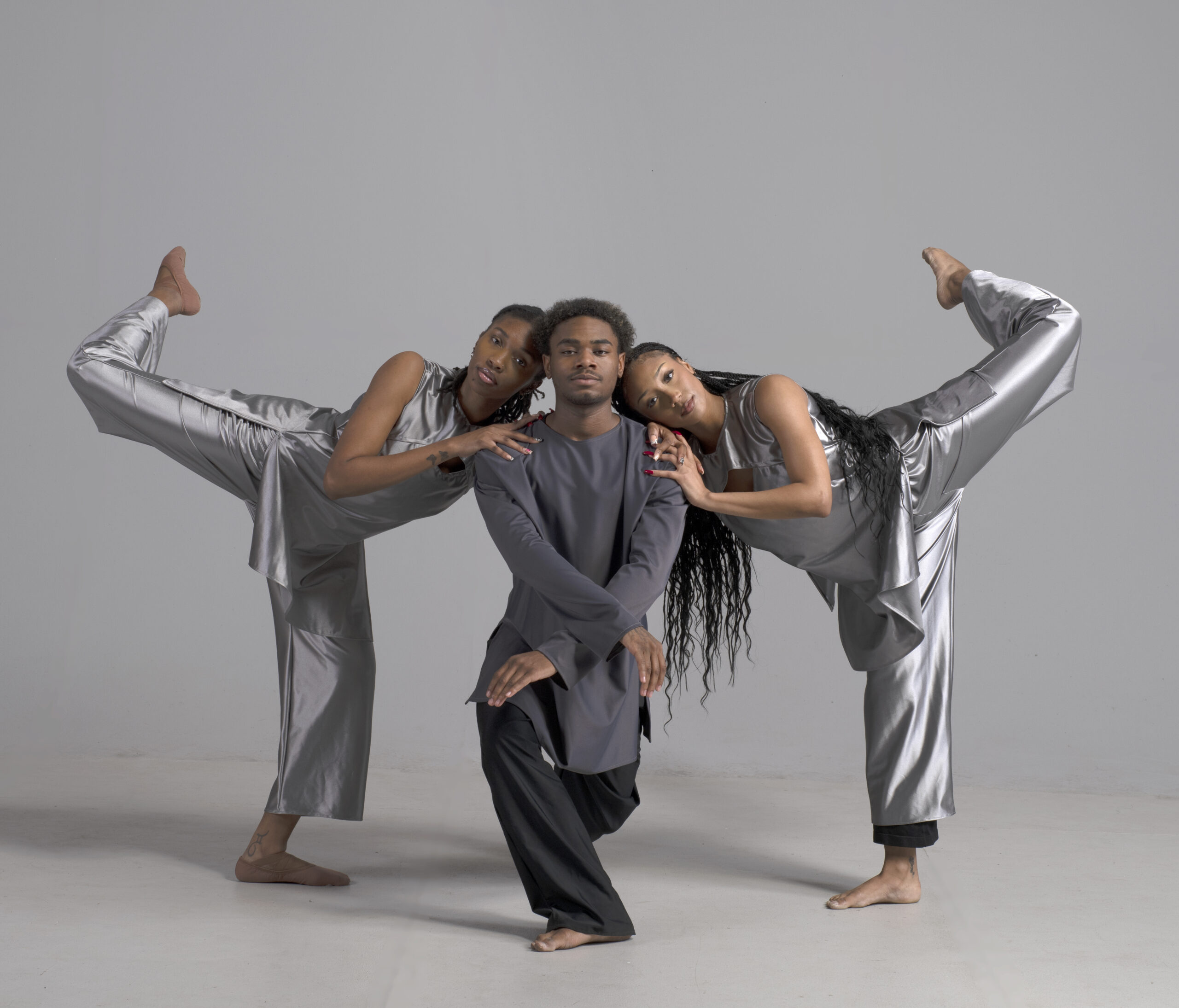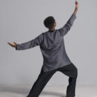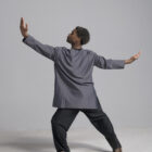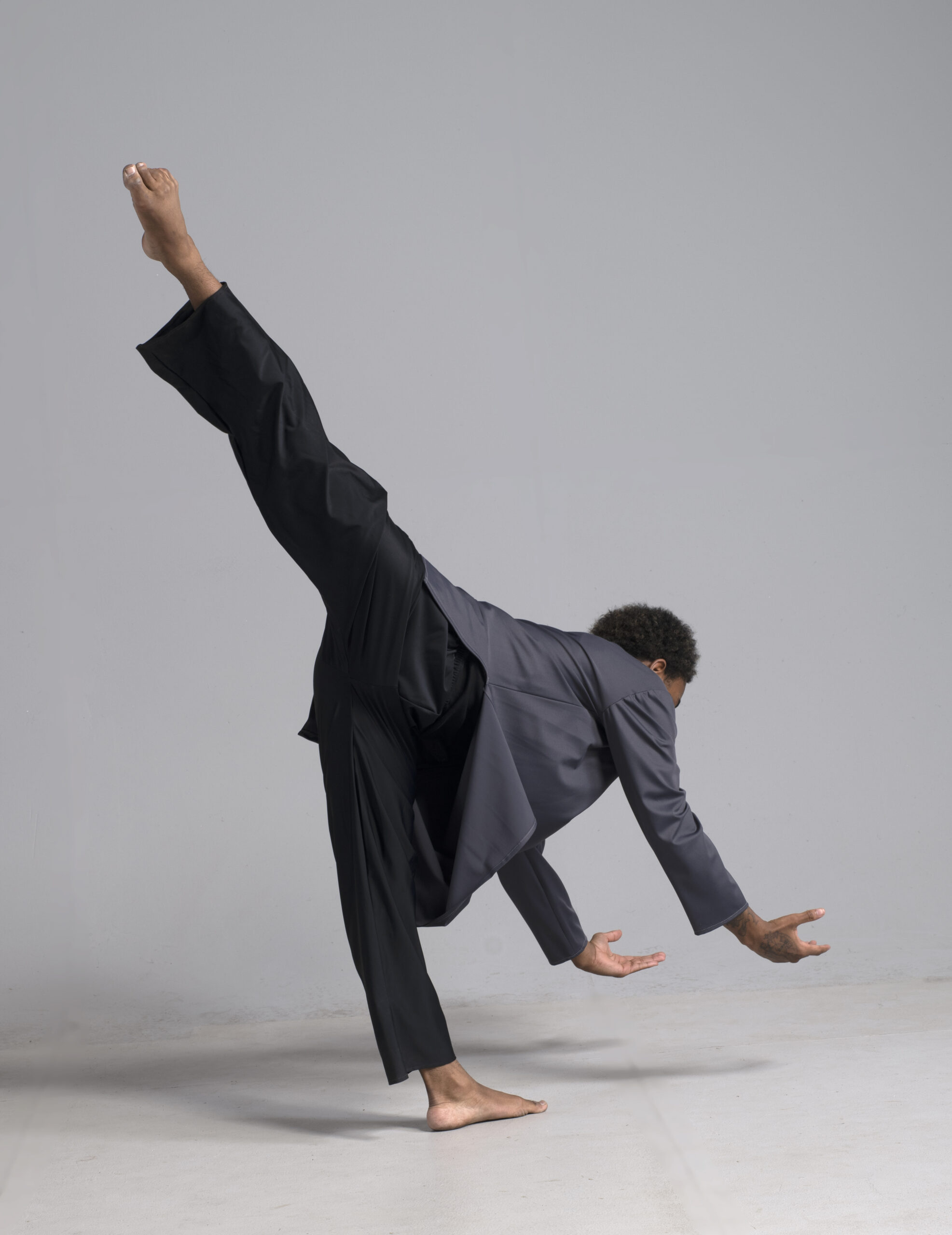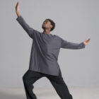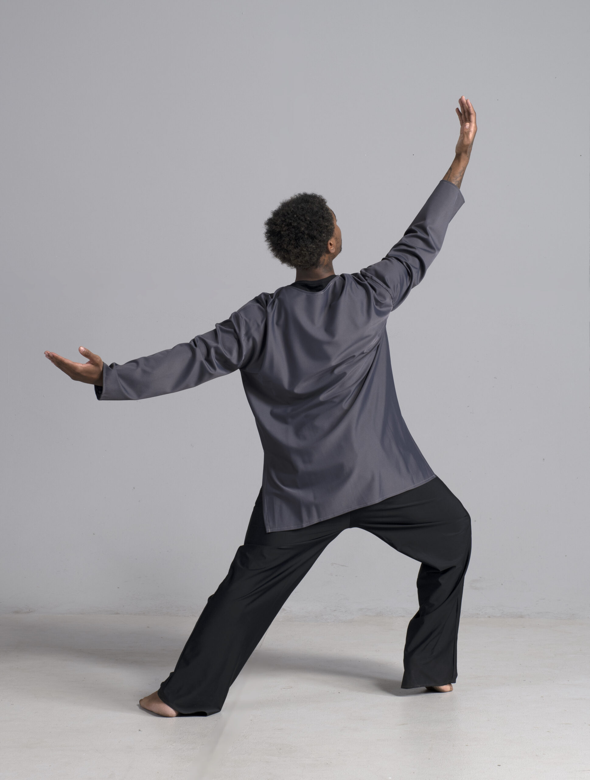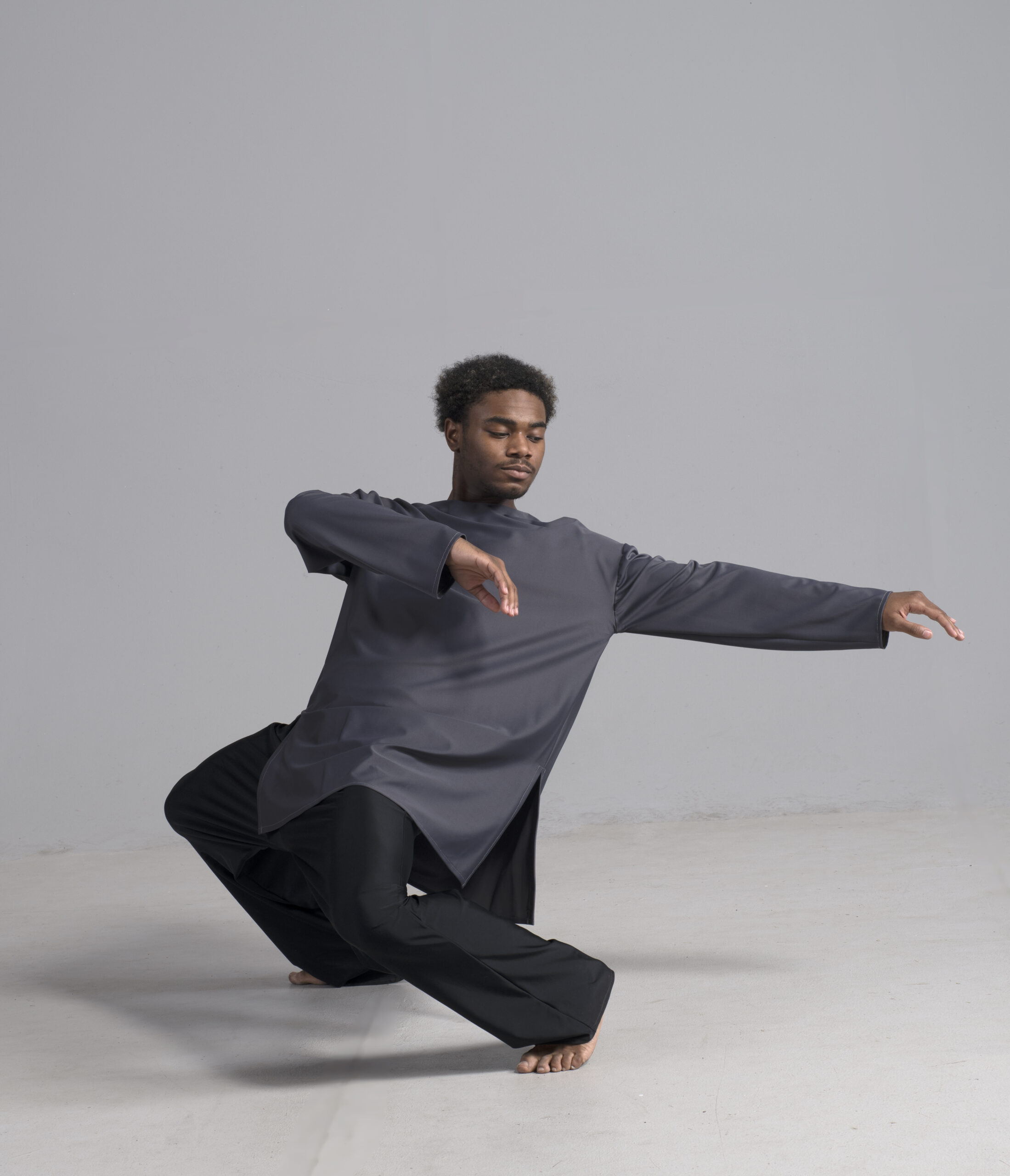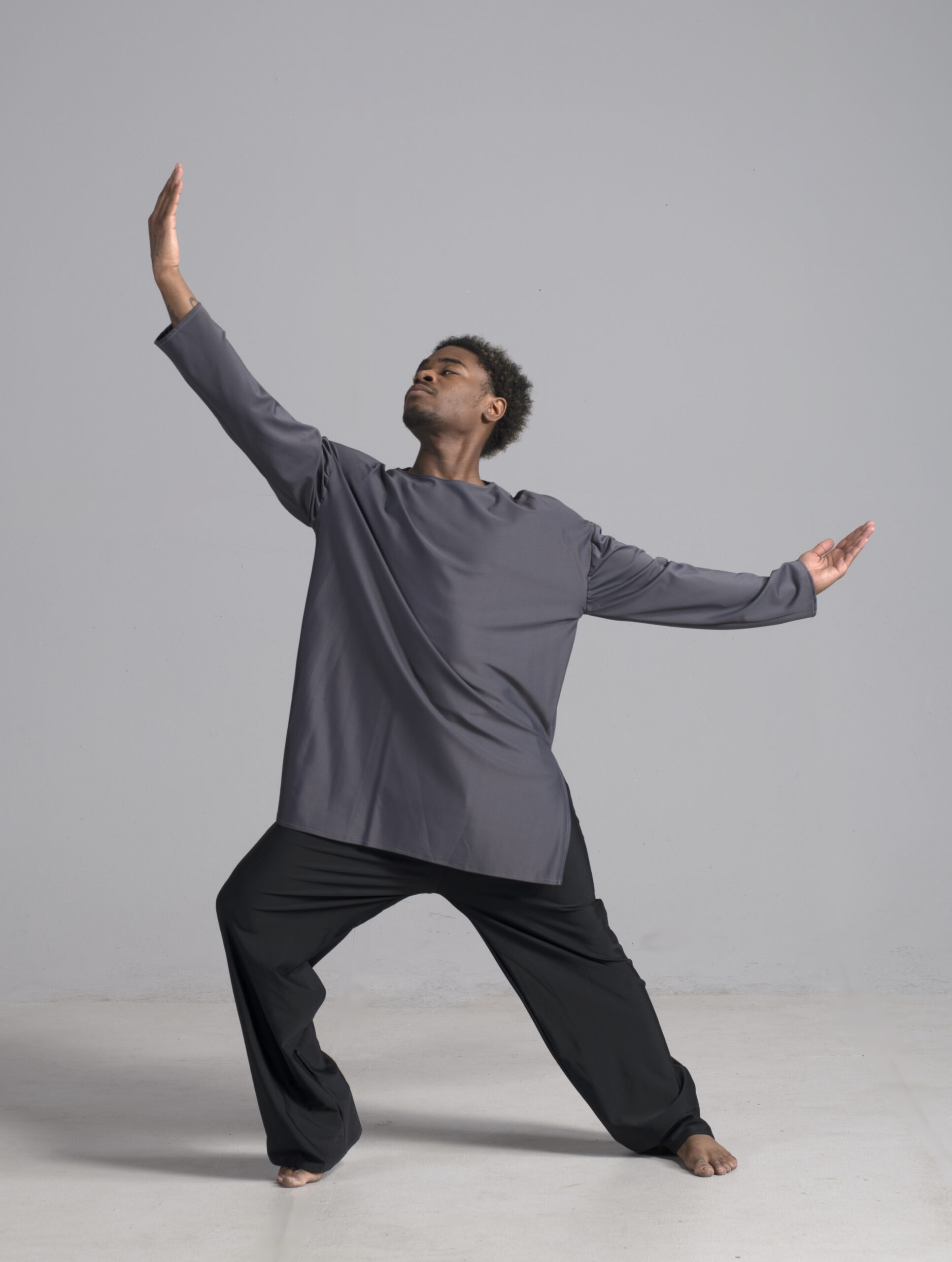 Men’s long sleeve dance top shown in charcoal. Available in a matte, shiny, satin, and other custom colors.