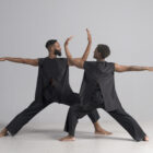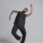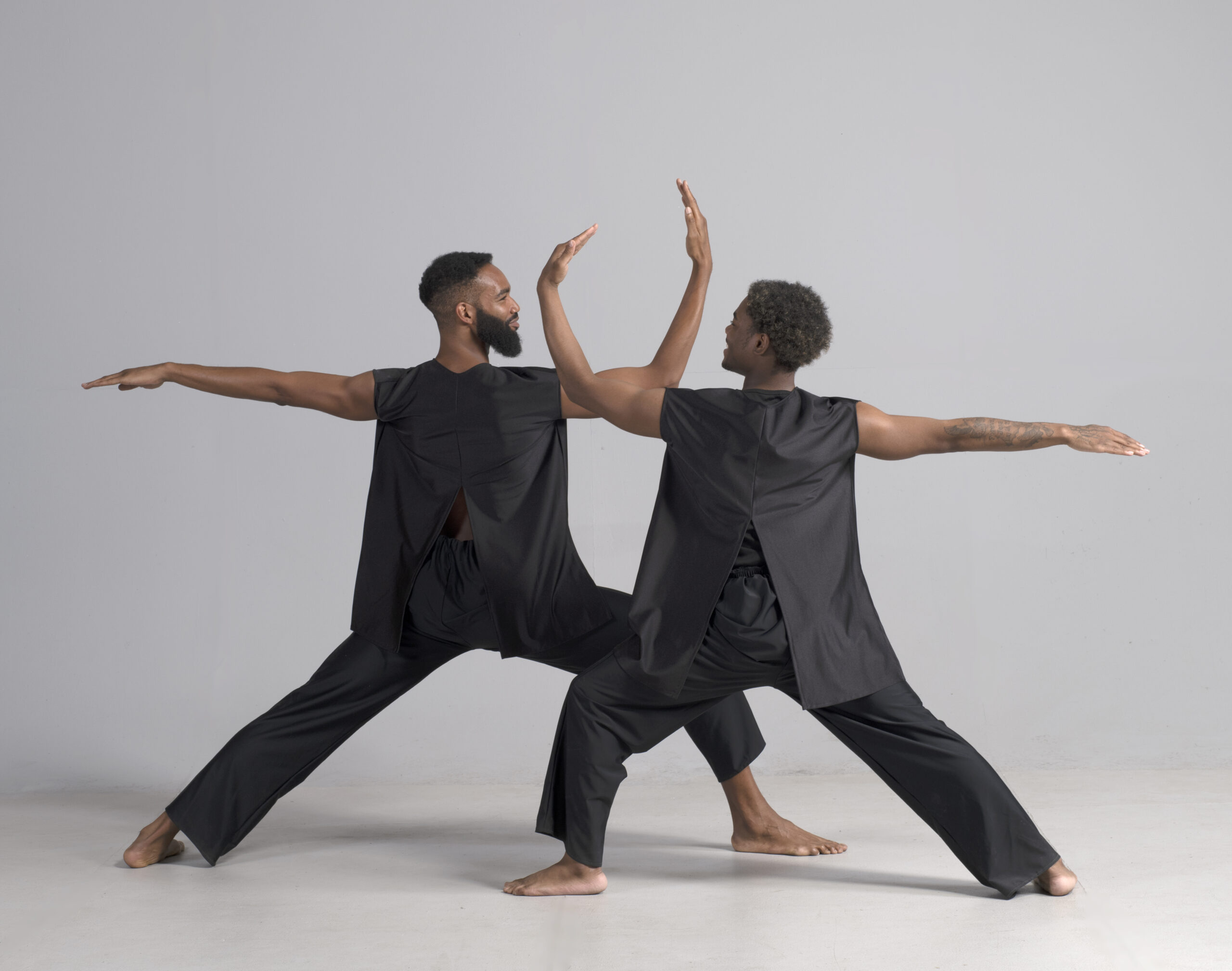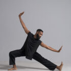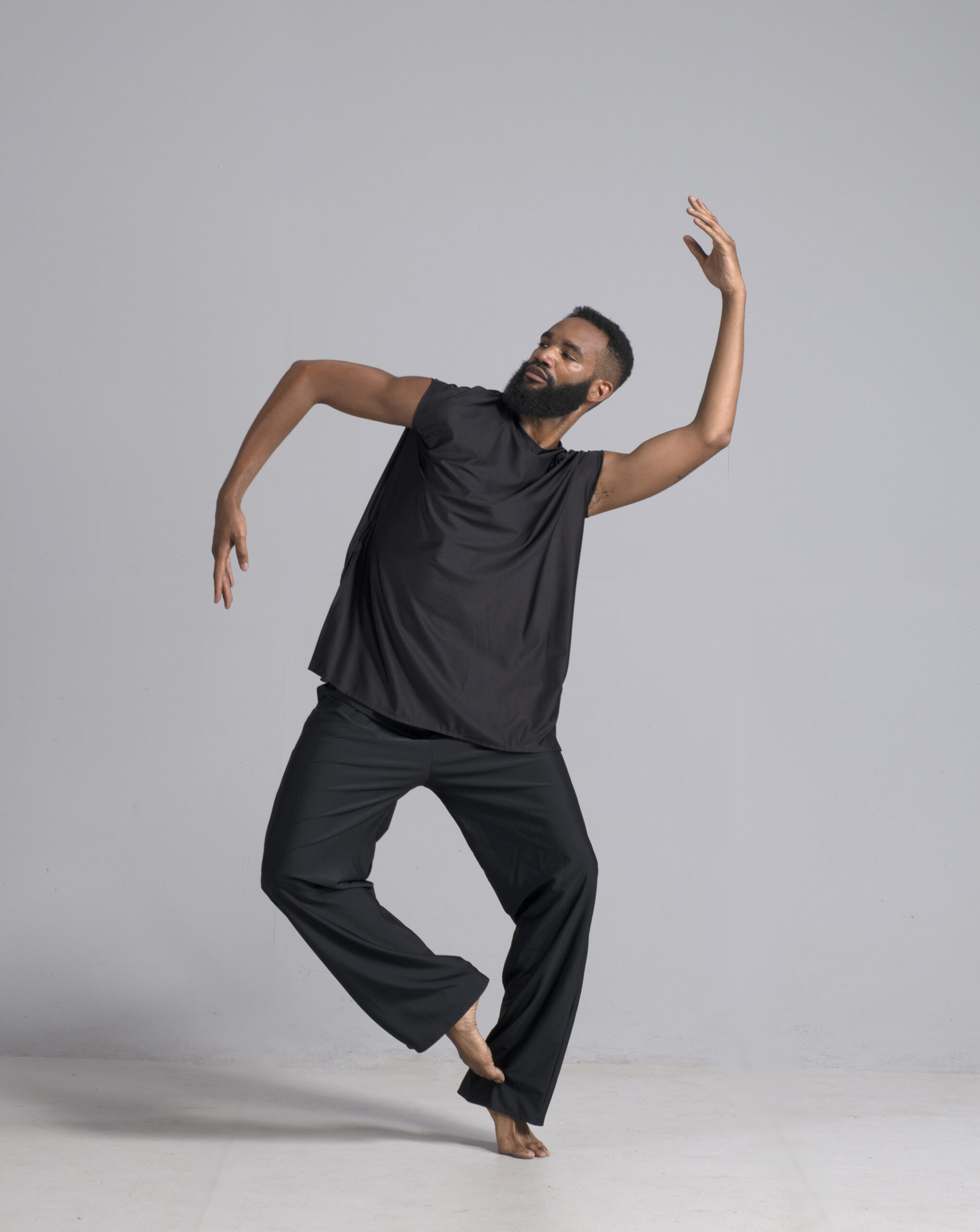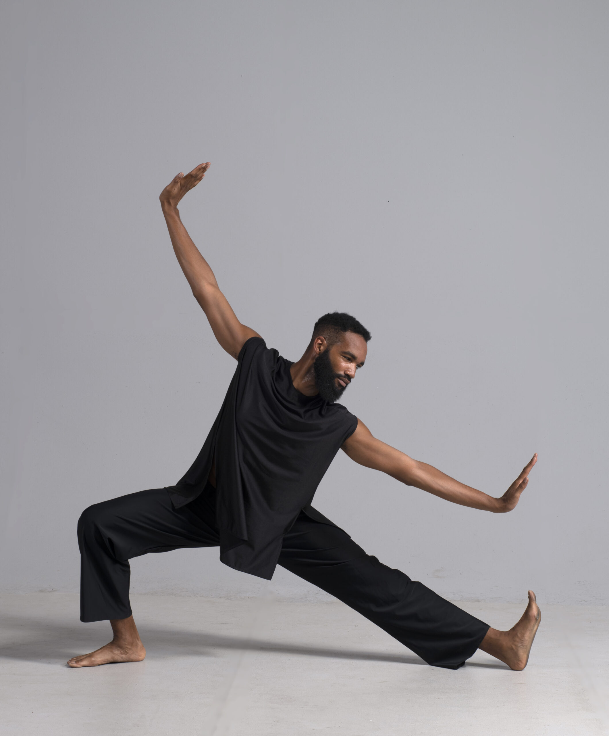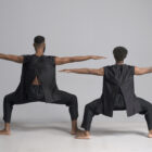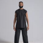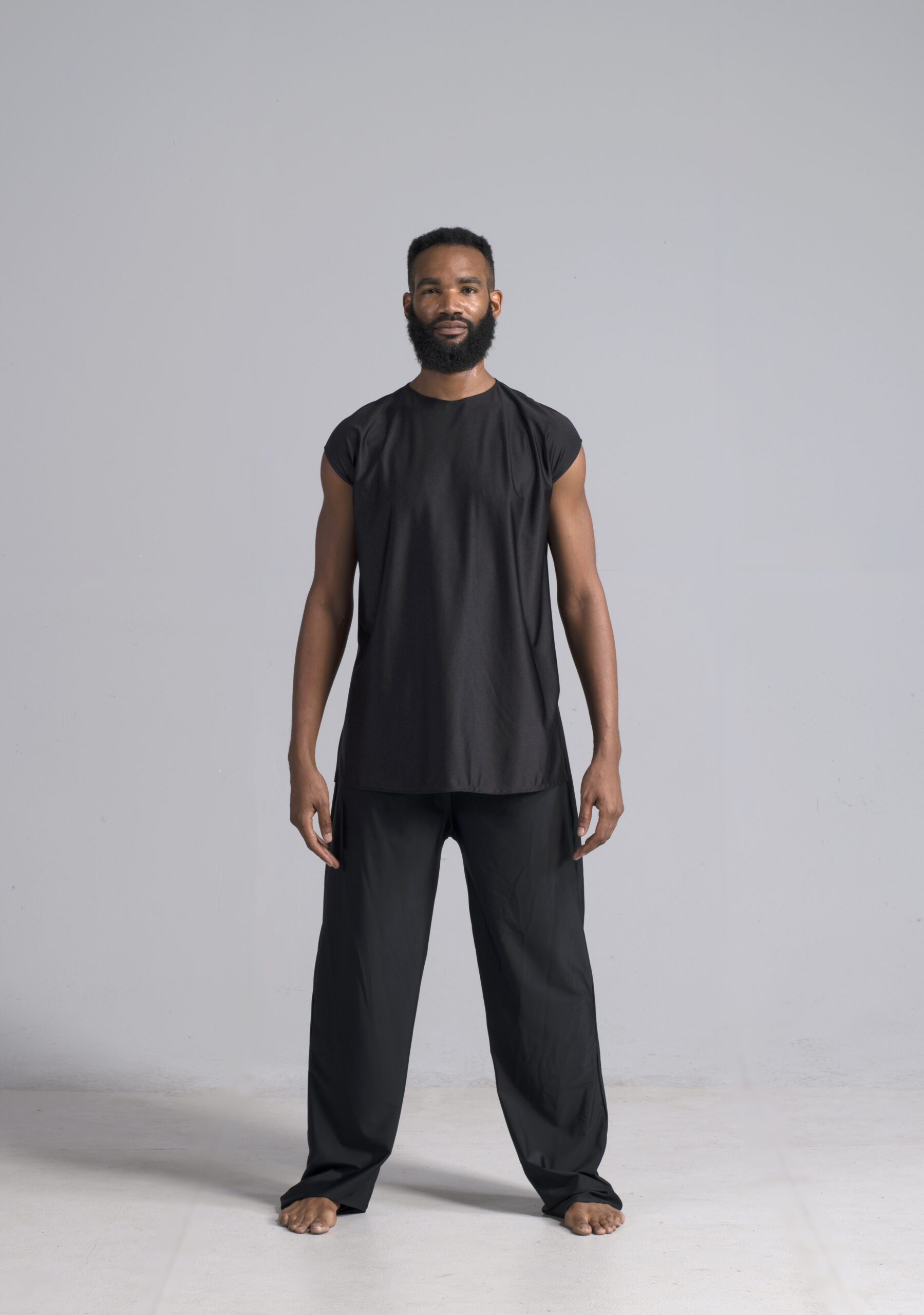 Men’s dance top shown with slit in the back, available in a matte or shiny.