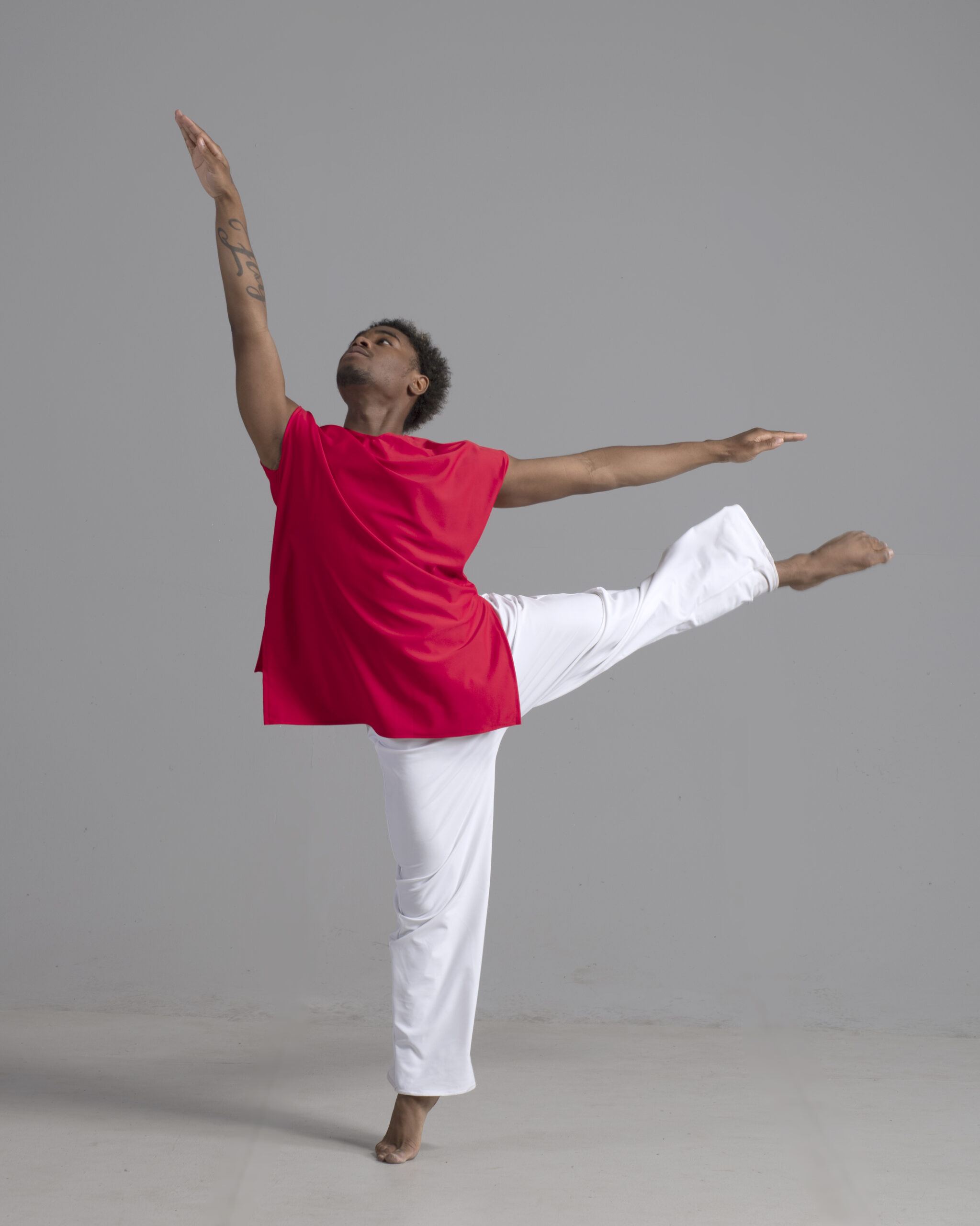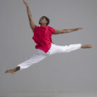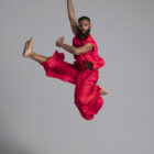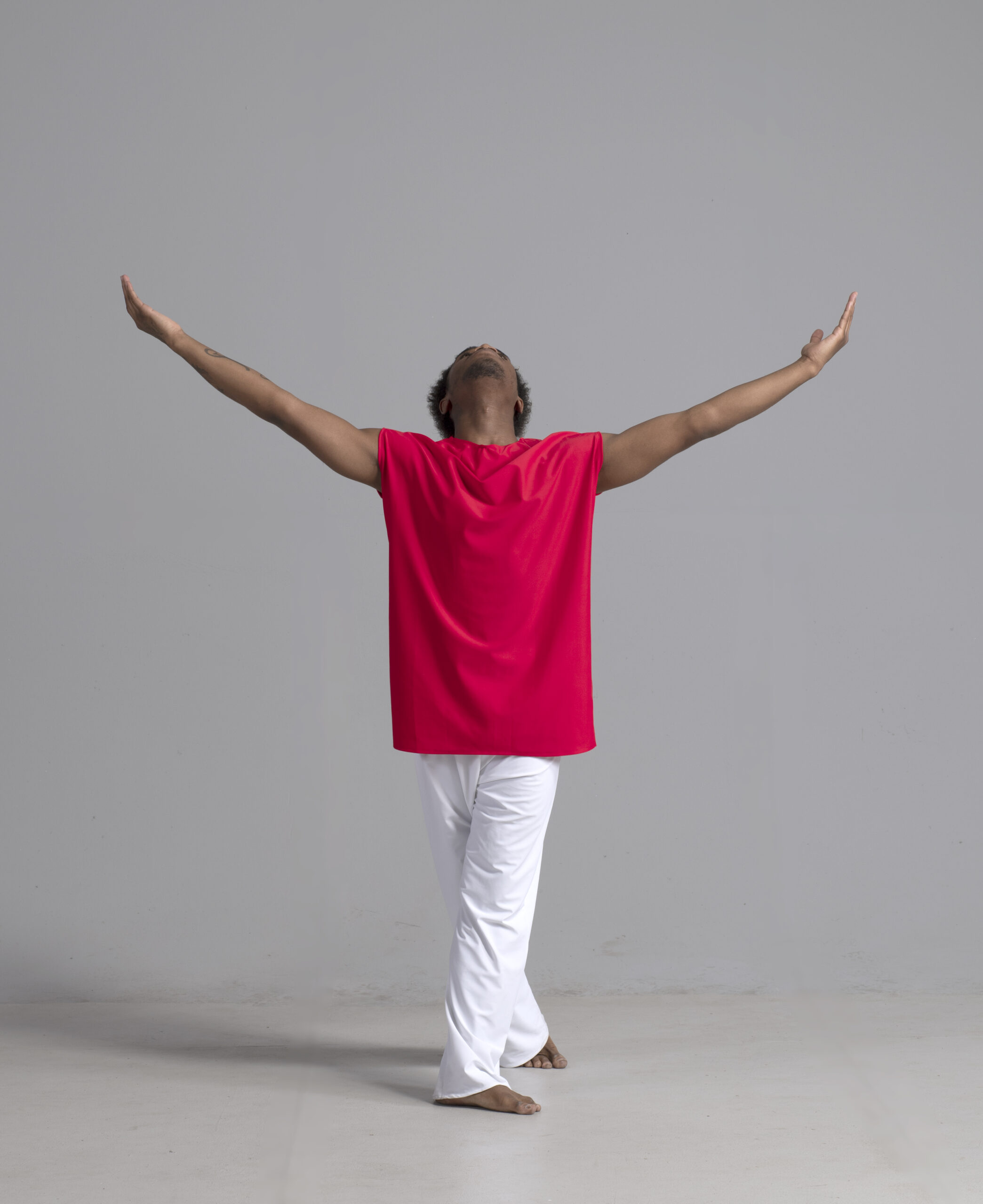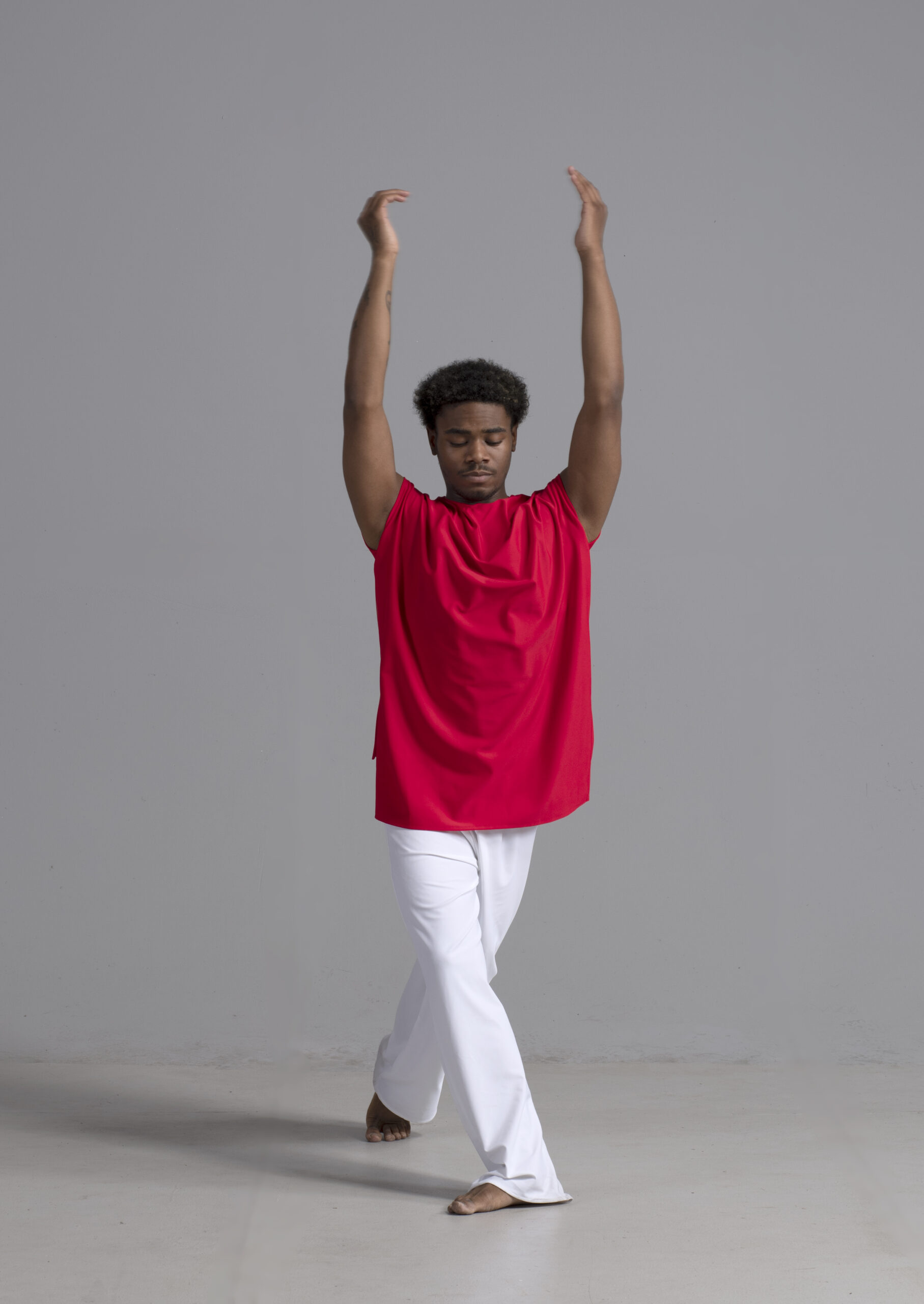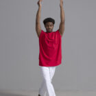 Men’s dance top shown in red, available in a matte or shiny.