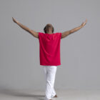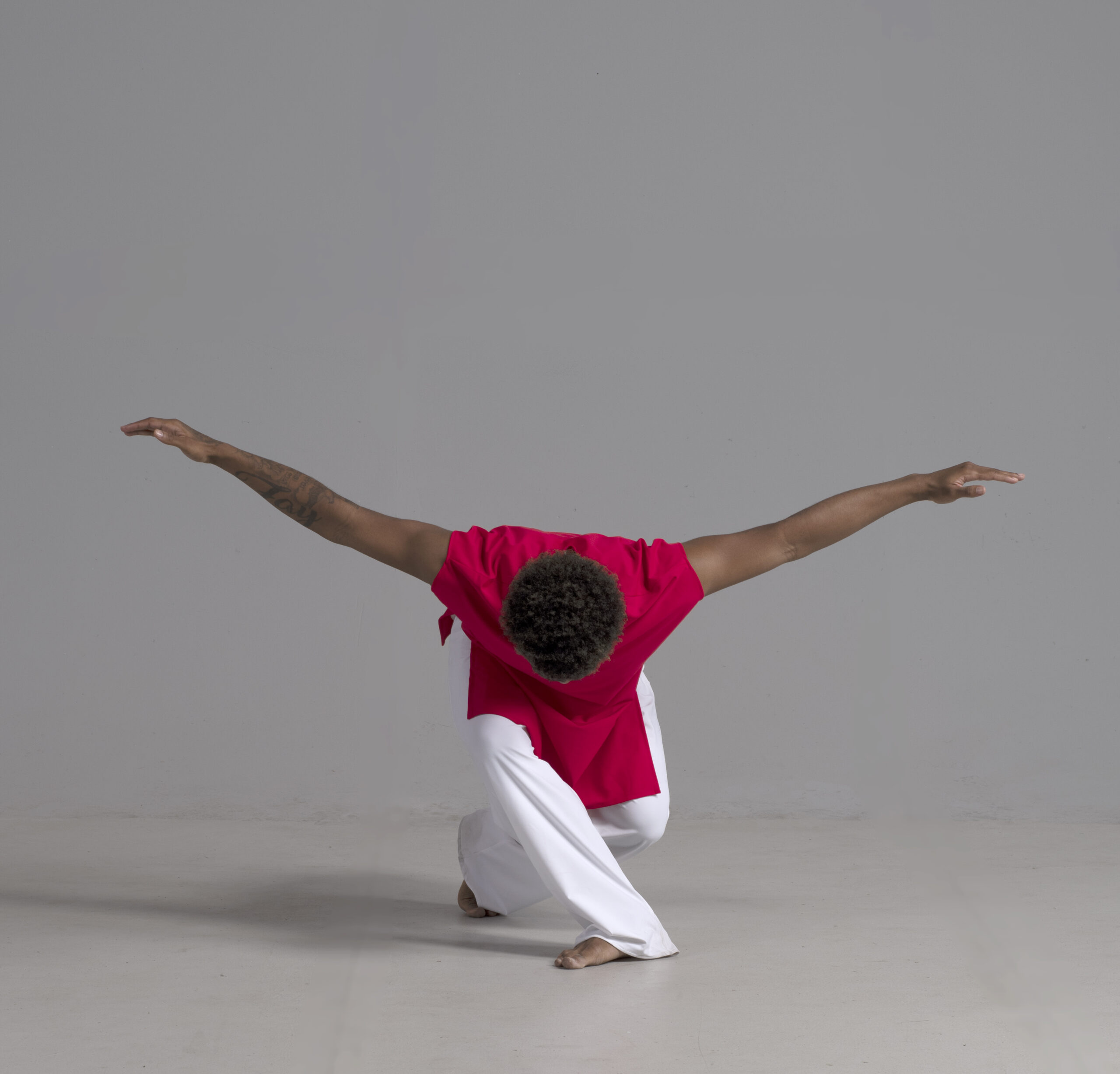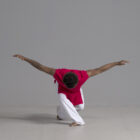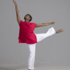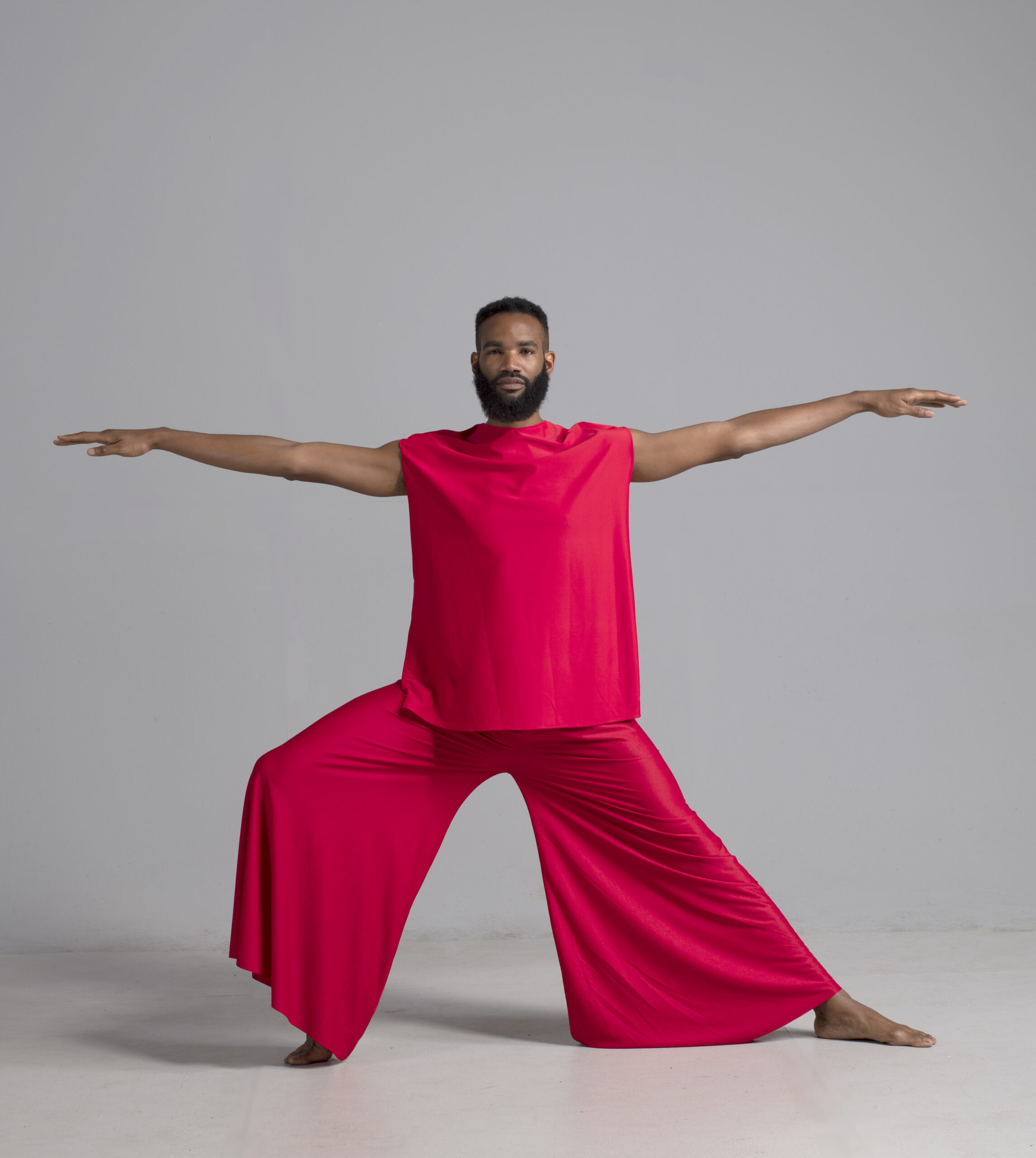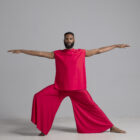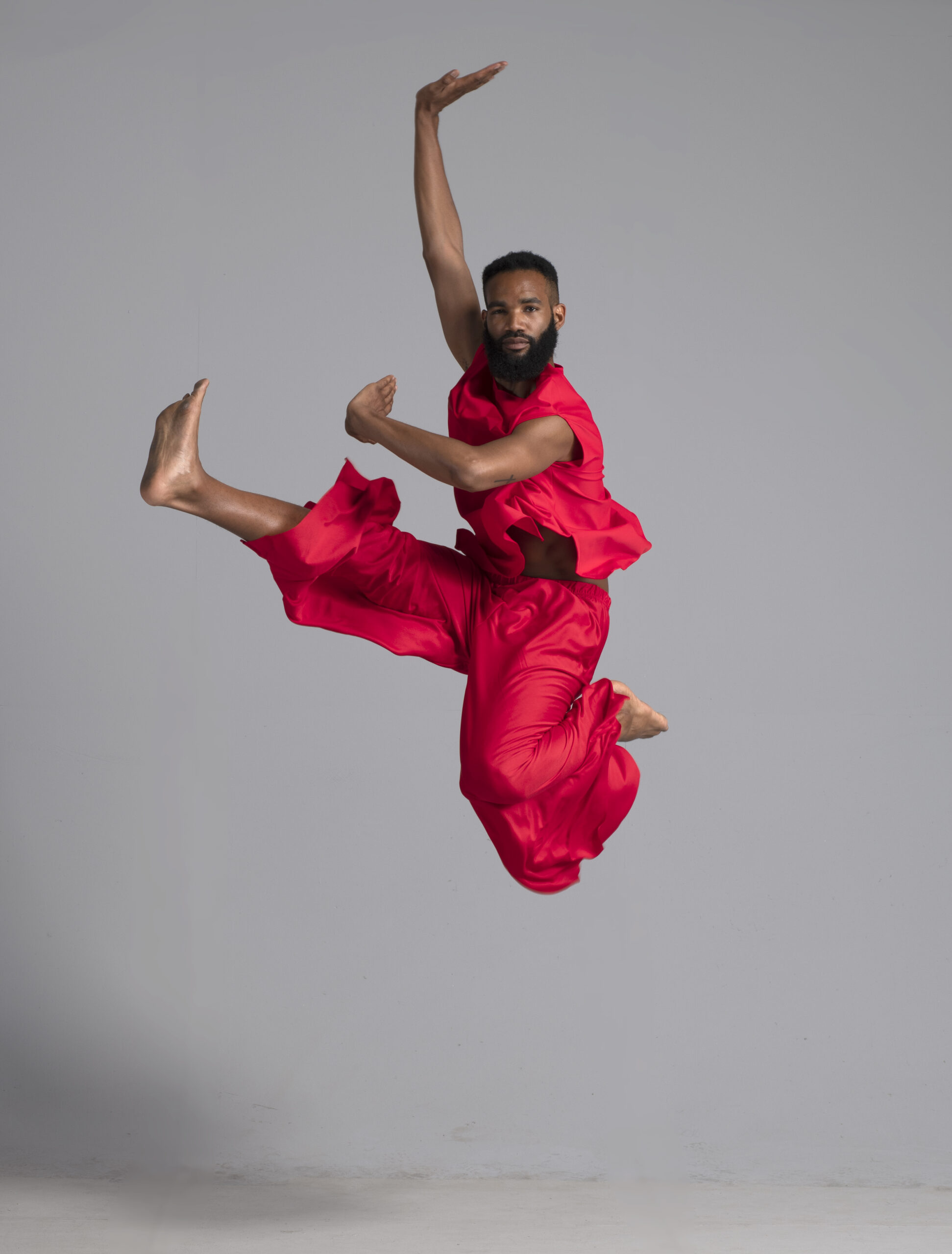 Men’s dance top shown in red, available in a matte or shiny.