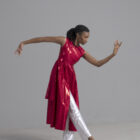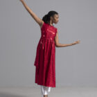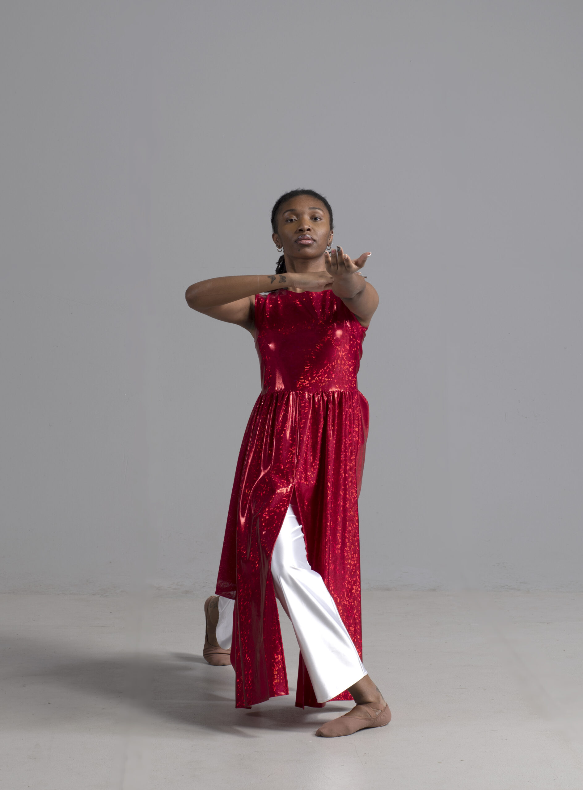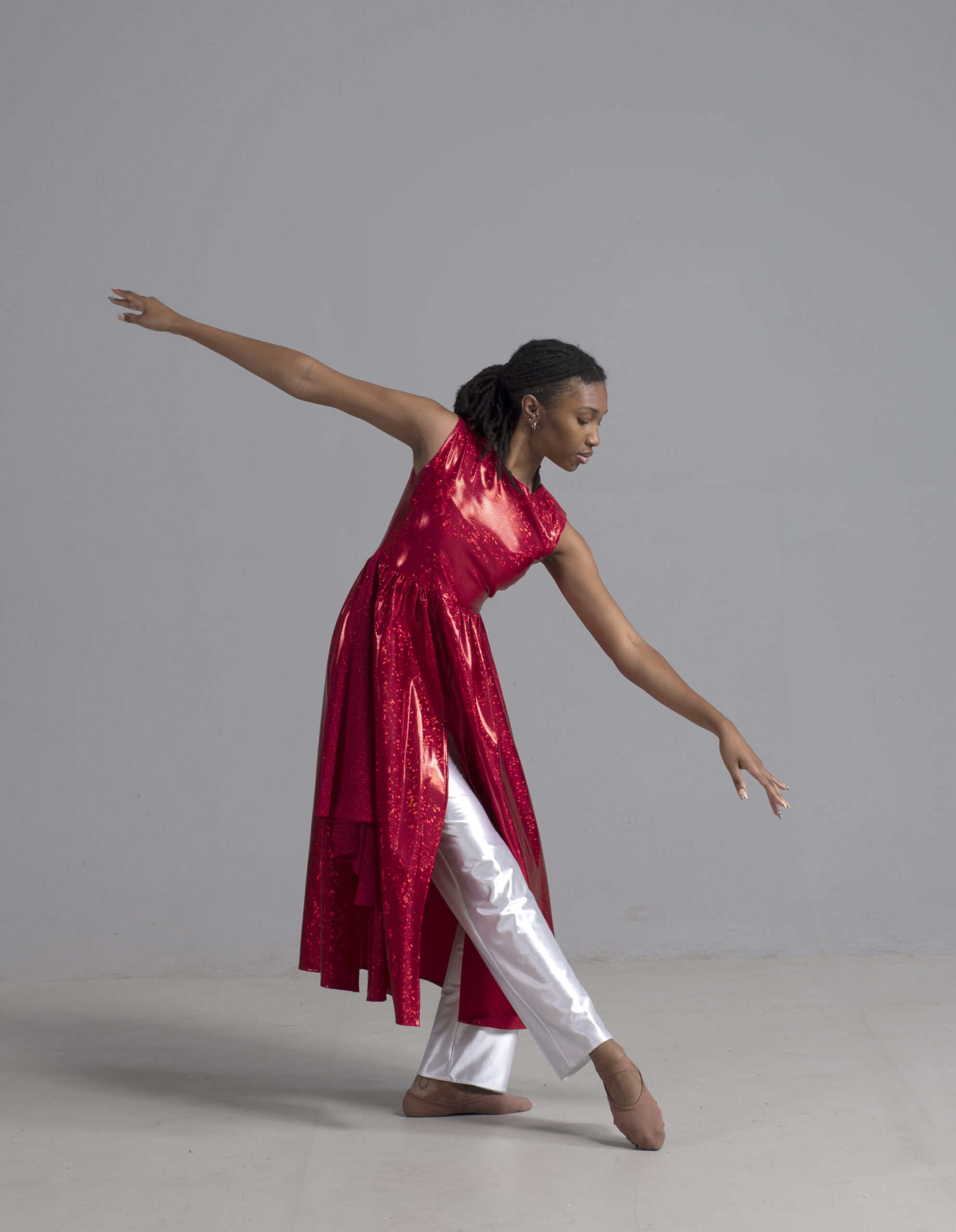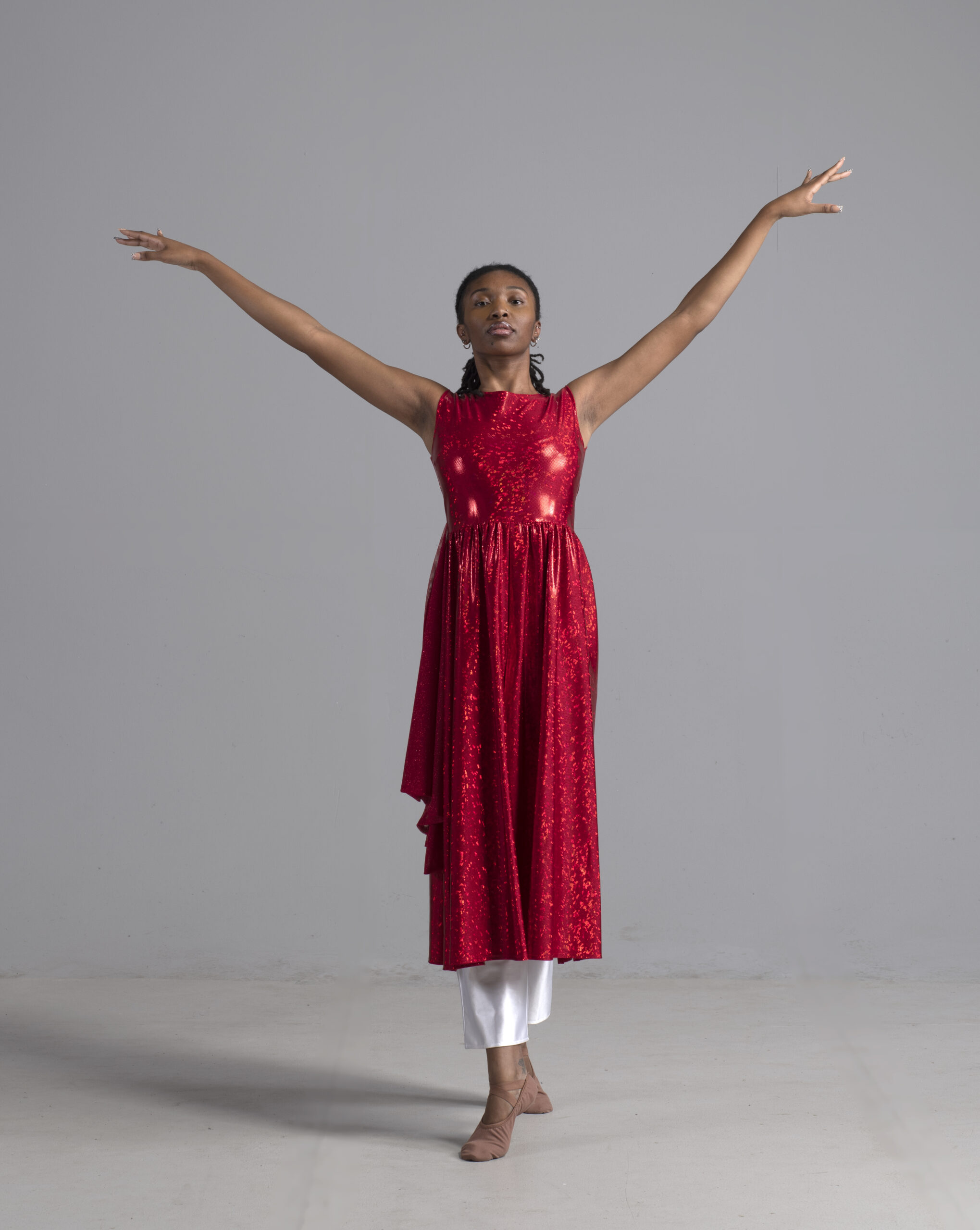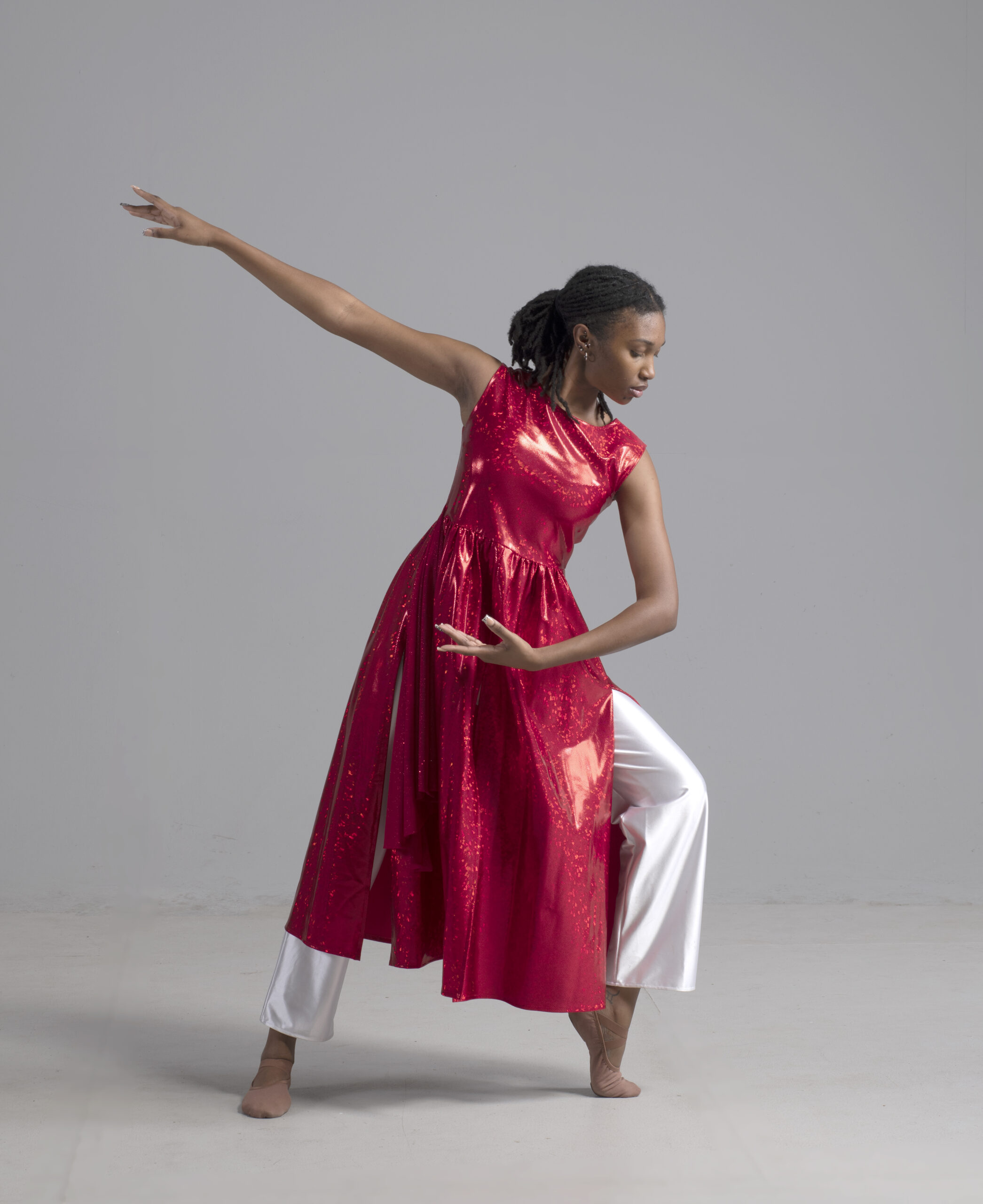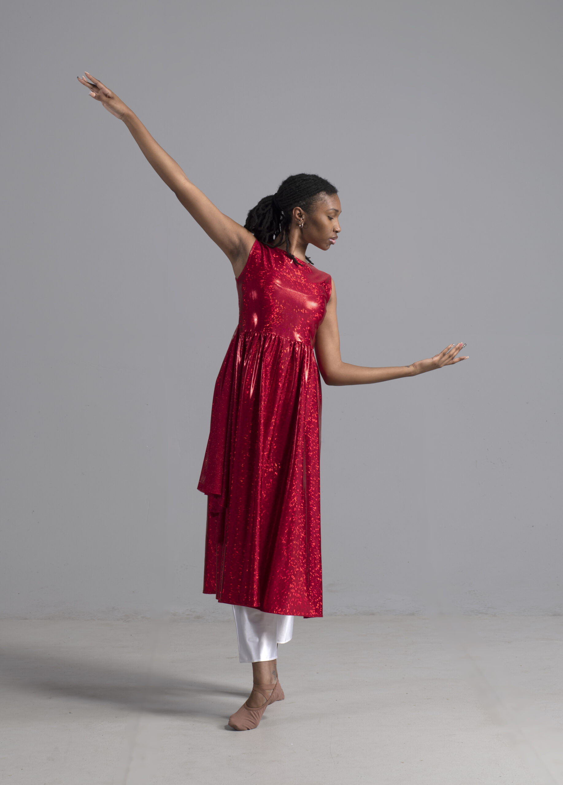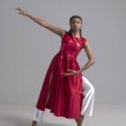 Presenting an exclusive long overlay accented with a side piece, shown in a rich metallic red.