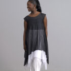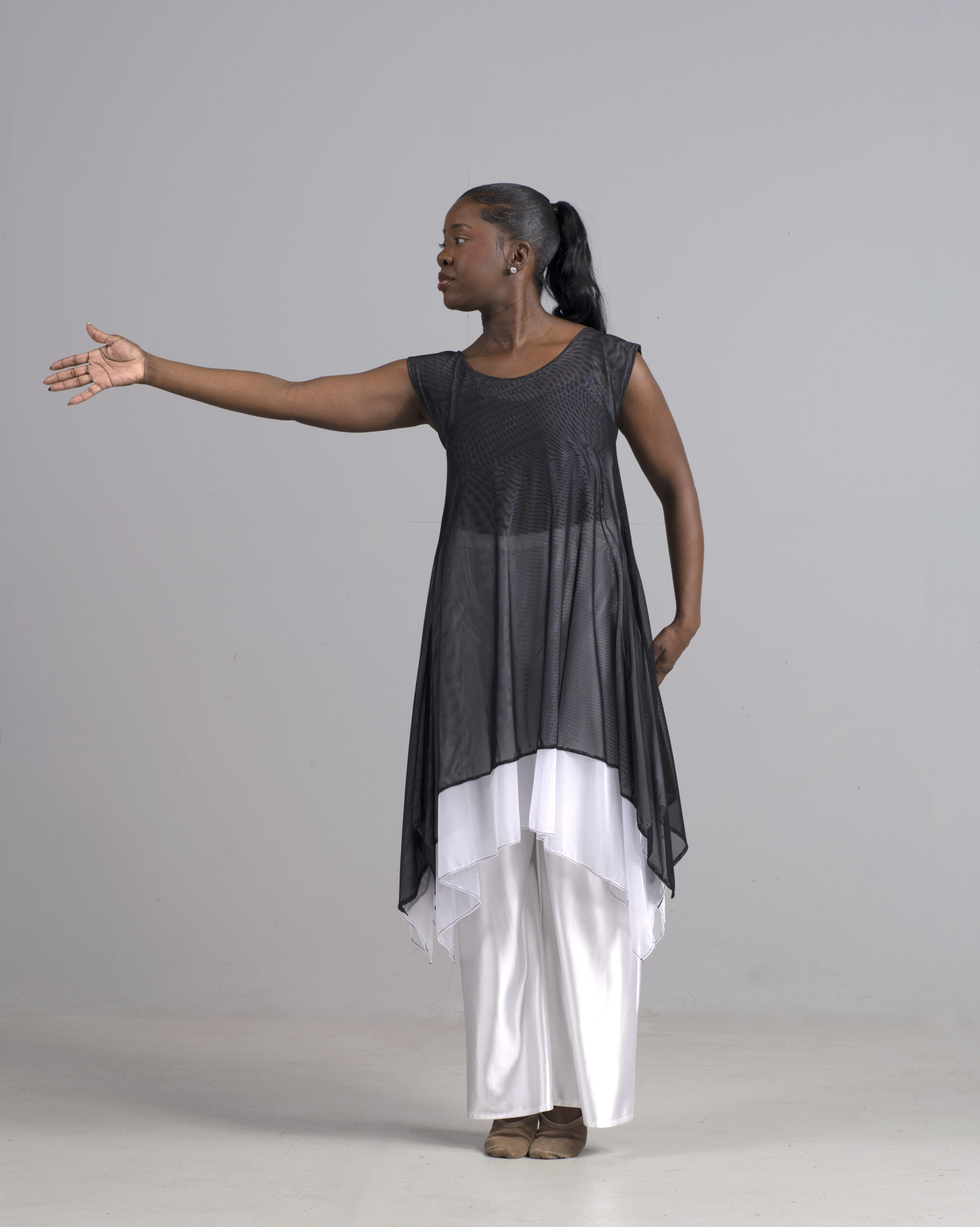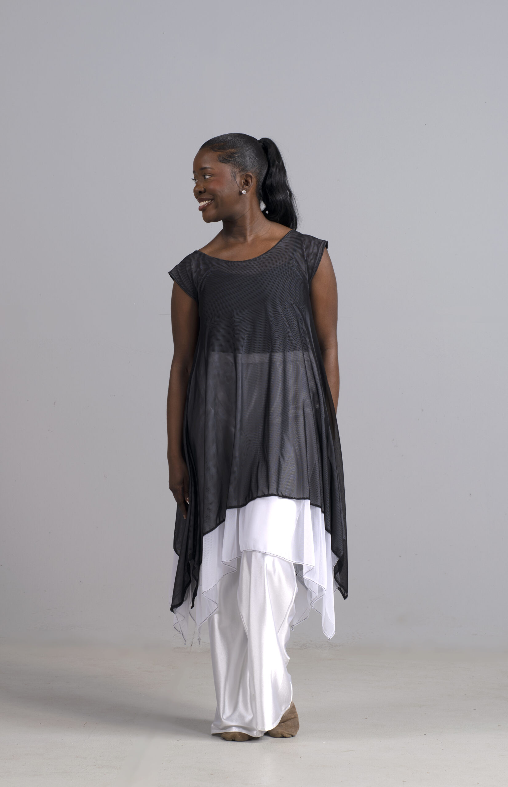 Exclusively at MHX Dancewear Too, a uniquely designed sleeveless, breathable sleeveless dance dress with the perfect dancer’s stretch. Shown in a . black and white.
