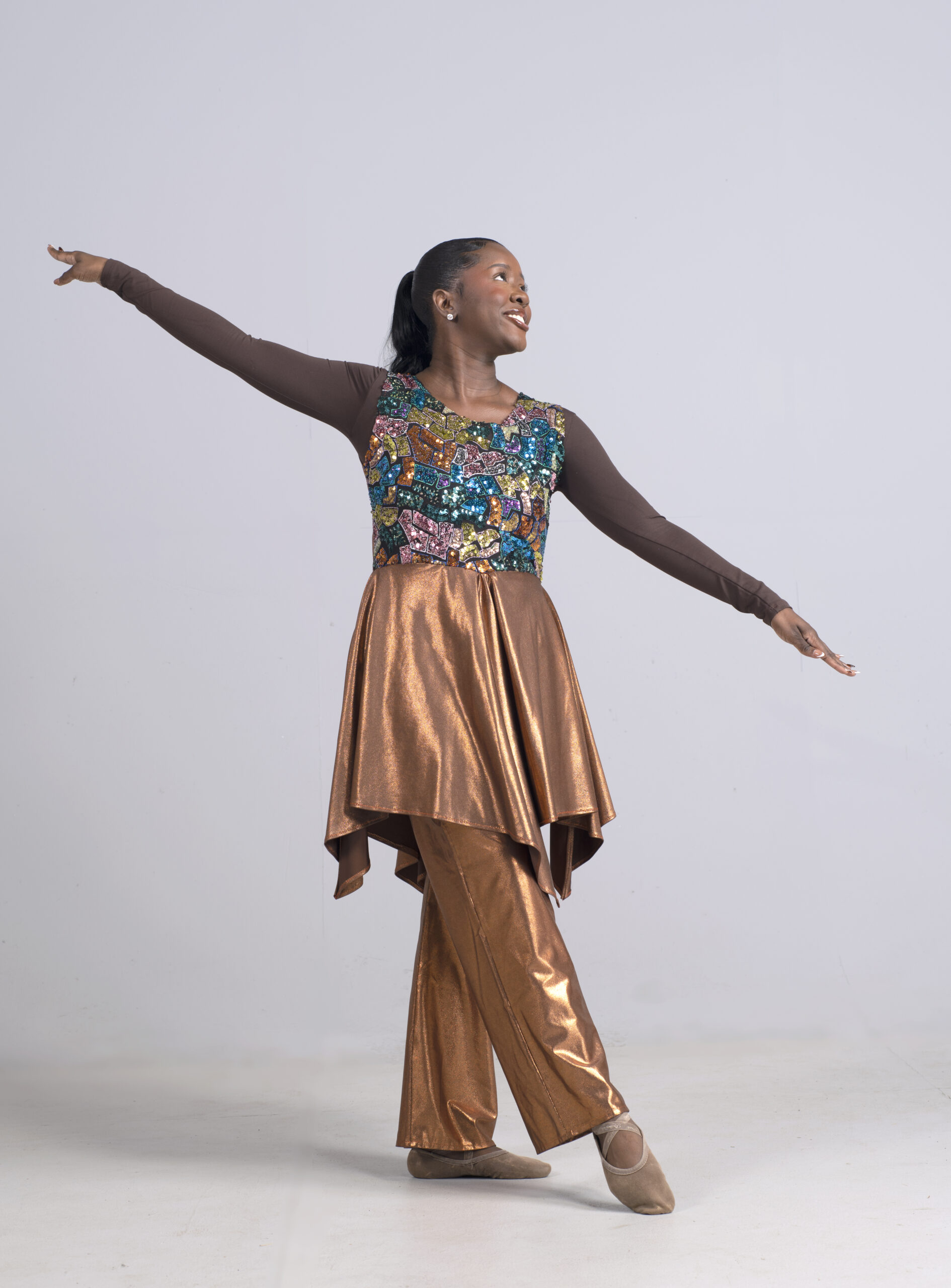 An exclusive tunic, one of our best sellers, Windowpane II in copper. Featuring an exclusive windowpane embellishment.
