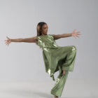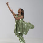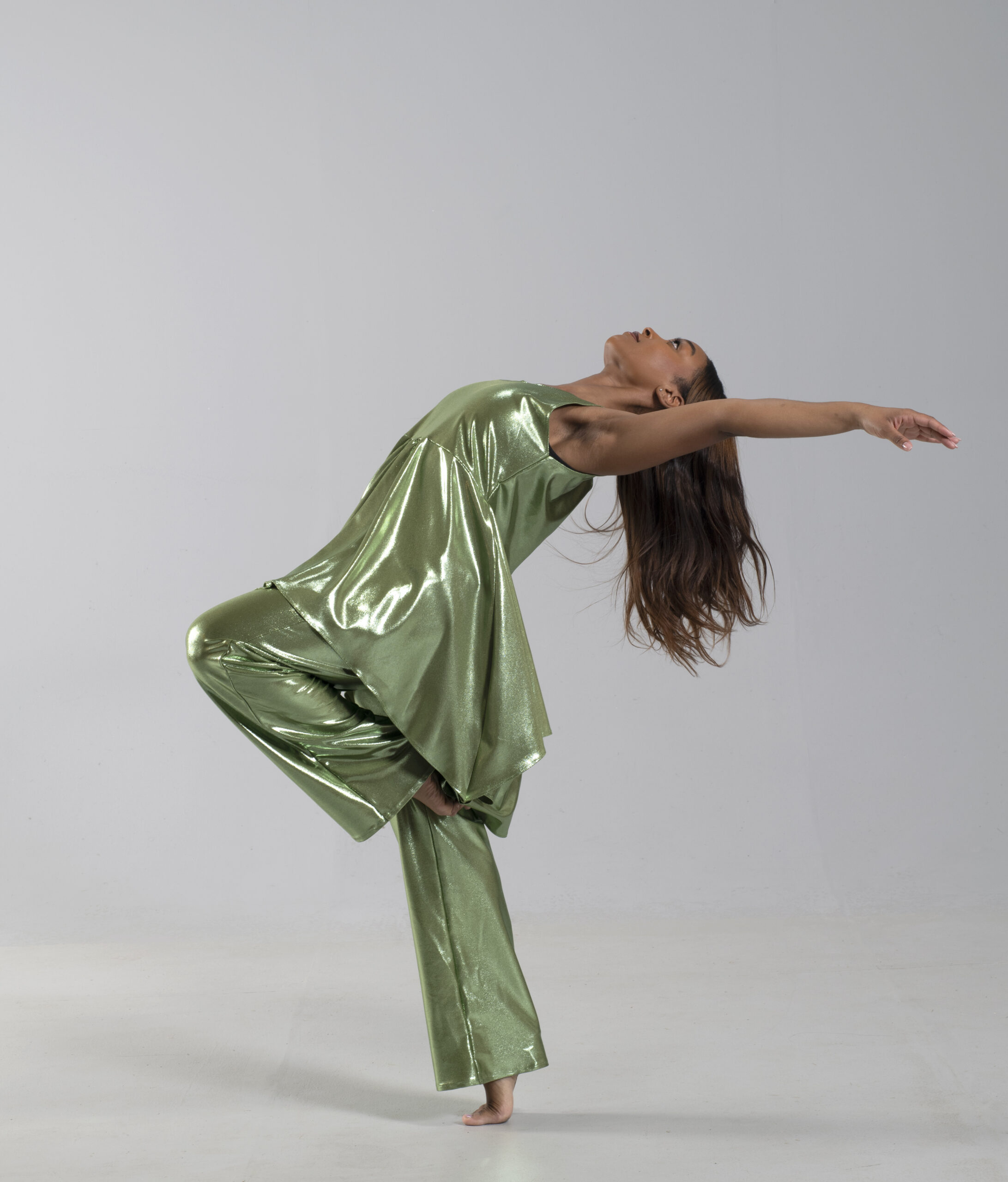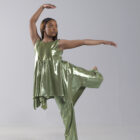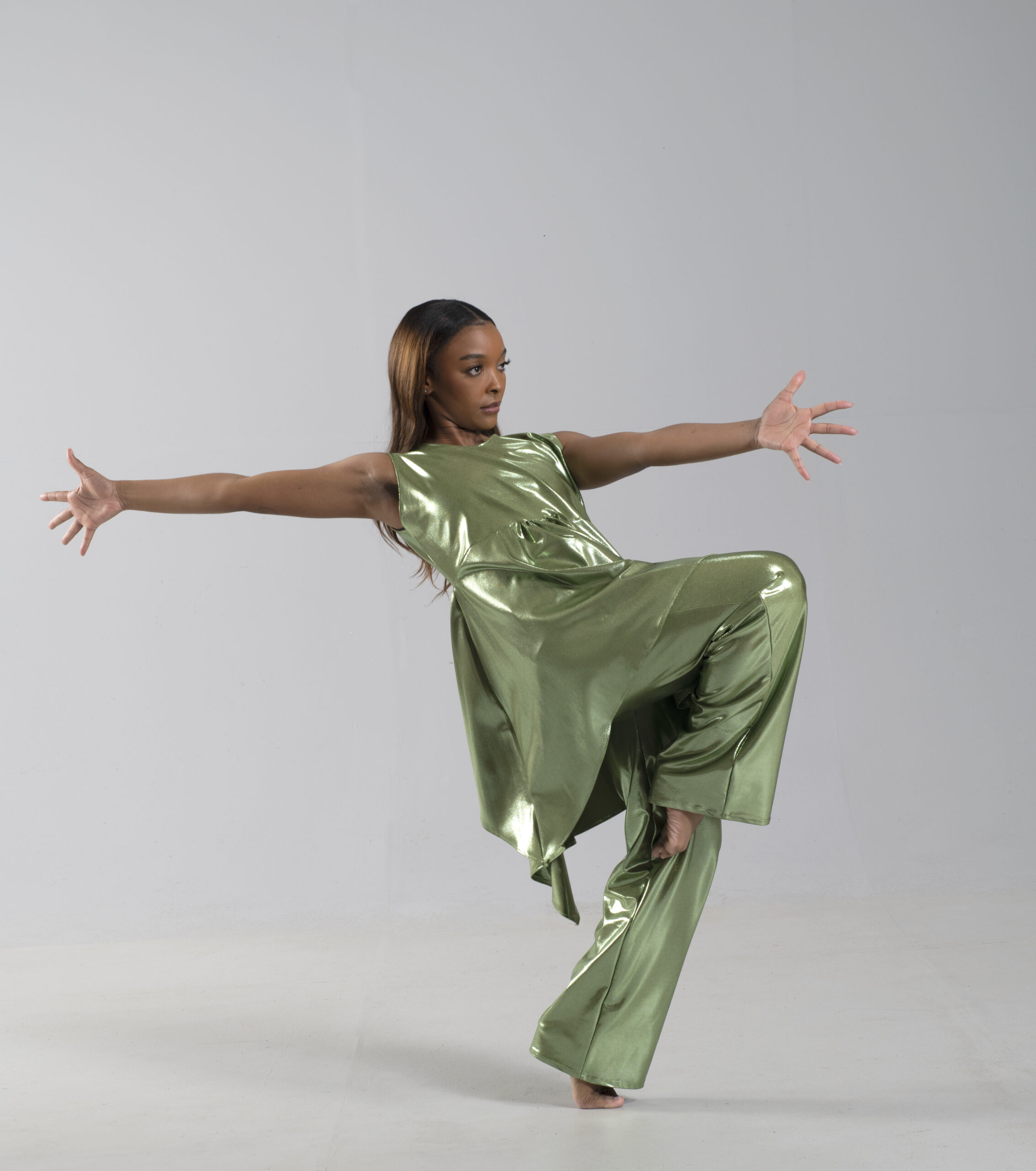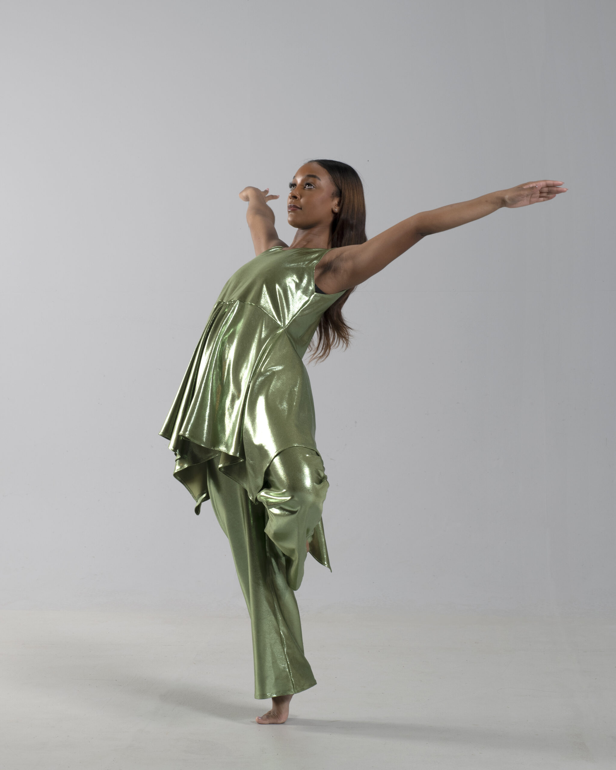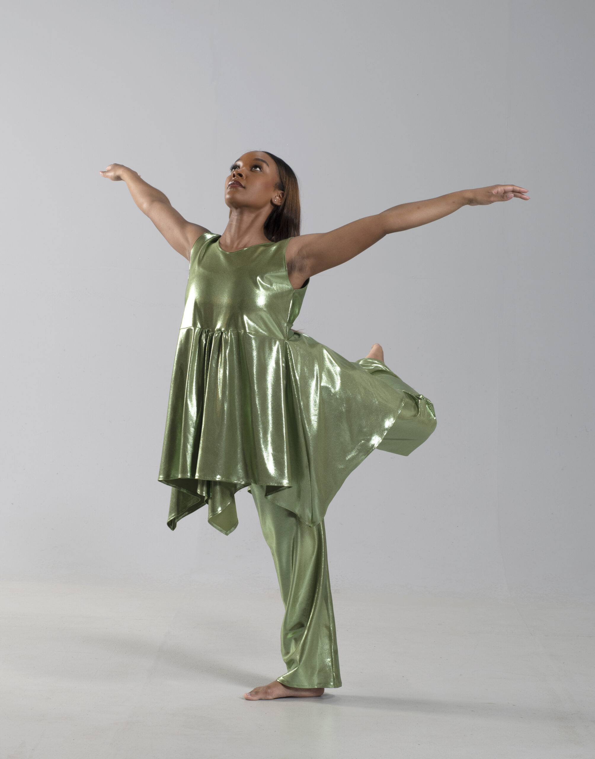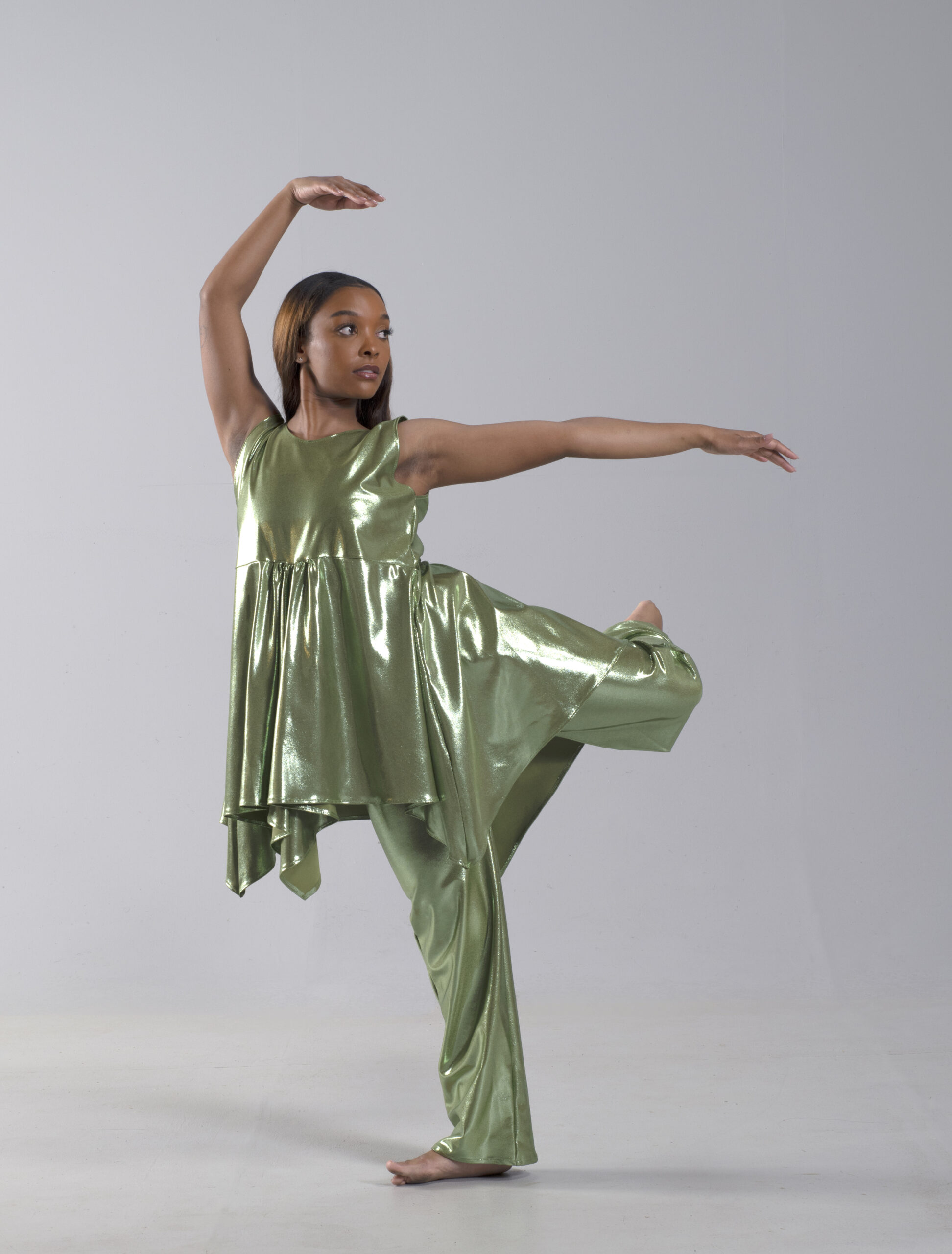 It’s a Rich Metallic Dance Tunic shown in Pastoral Green.